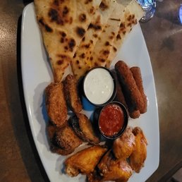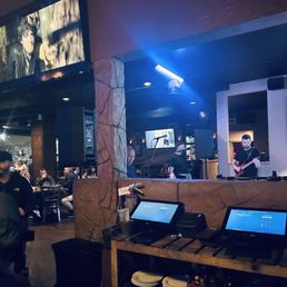 Solid service despite being busy. An old school band was playing tonight and the dance floor was packed with an older crowd tonight . Grab their sampler platter and a drink and catch a game on one of their dozen + tvs. The patio is really large with lots of space heaters and there us a little stream that runs beside it .This is a chill spot to grab a meal and listen to some music .