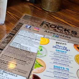 The menu at On the Rocks Bar & Grill is diverse, featuring appetizers like Ahi Poke and Bacon Wrapped Shrimp, mouthwatering pizzas like BBQ Chicken and Rocks Meat Lovers, and hearty entrees such as Beef Pot Pie and Beer Battered Fish N Chips. Don't forget to try their signature burgers, sandwiches, and wraps, like the Ahi Burger or Buffalo Chicken Wrap. Pair your meal with one of their refreshing beverages, from Barq's Root Beer to Fuze Iced Tea.